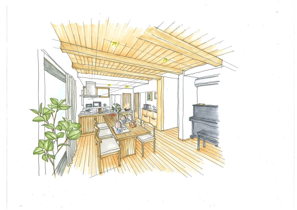 北西にあったキッチンを、南東に移動し明るく広いLDKにに大変身。