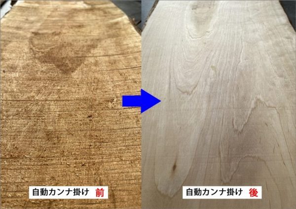 木材に自動カンナを掛けると、表面の木目がとってもキレイに現れます。