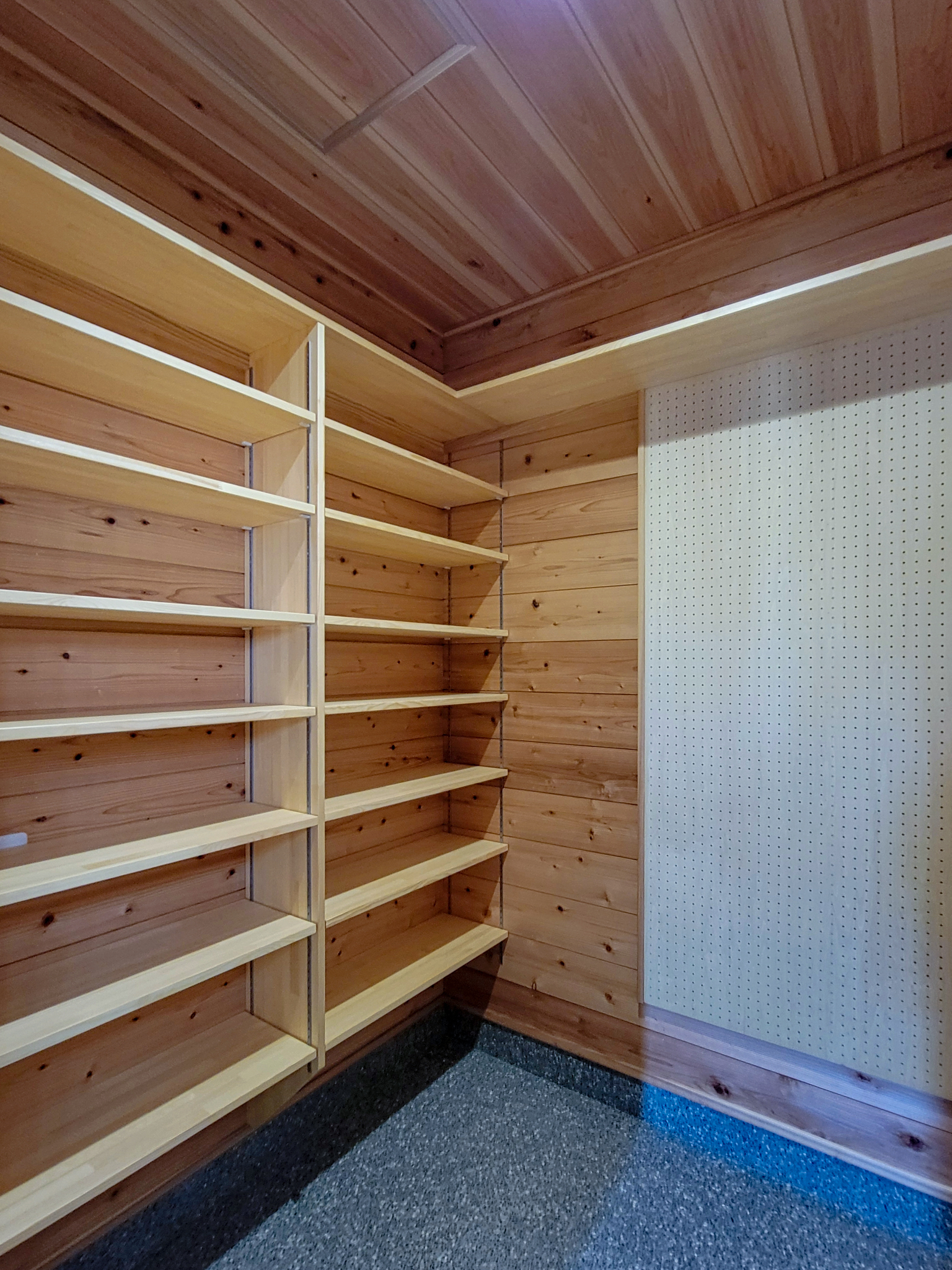 入って正面は有孔ボードになっているので、お好きにコーディネートしていただけます♪