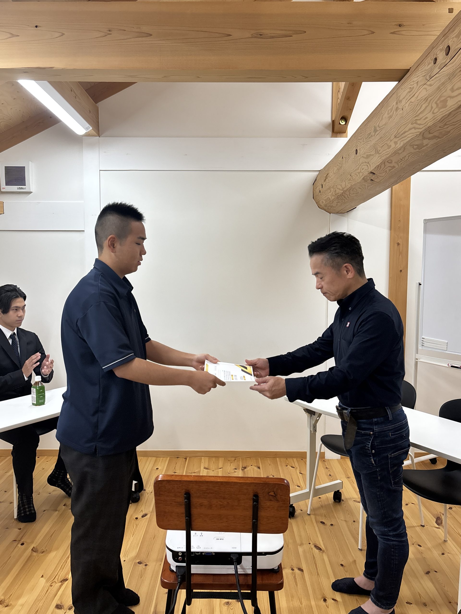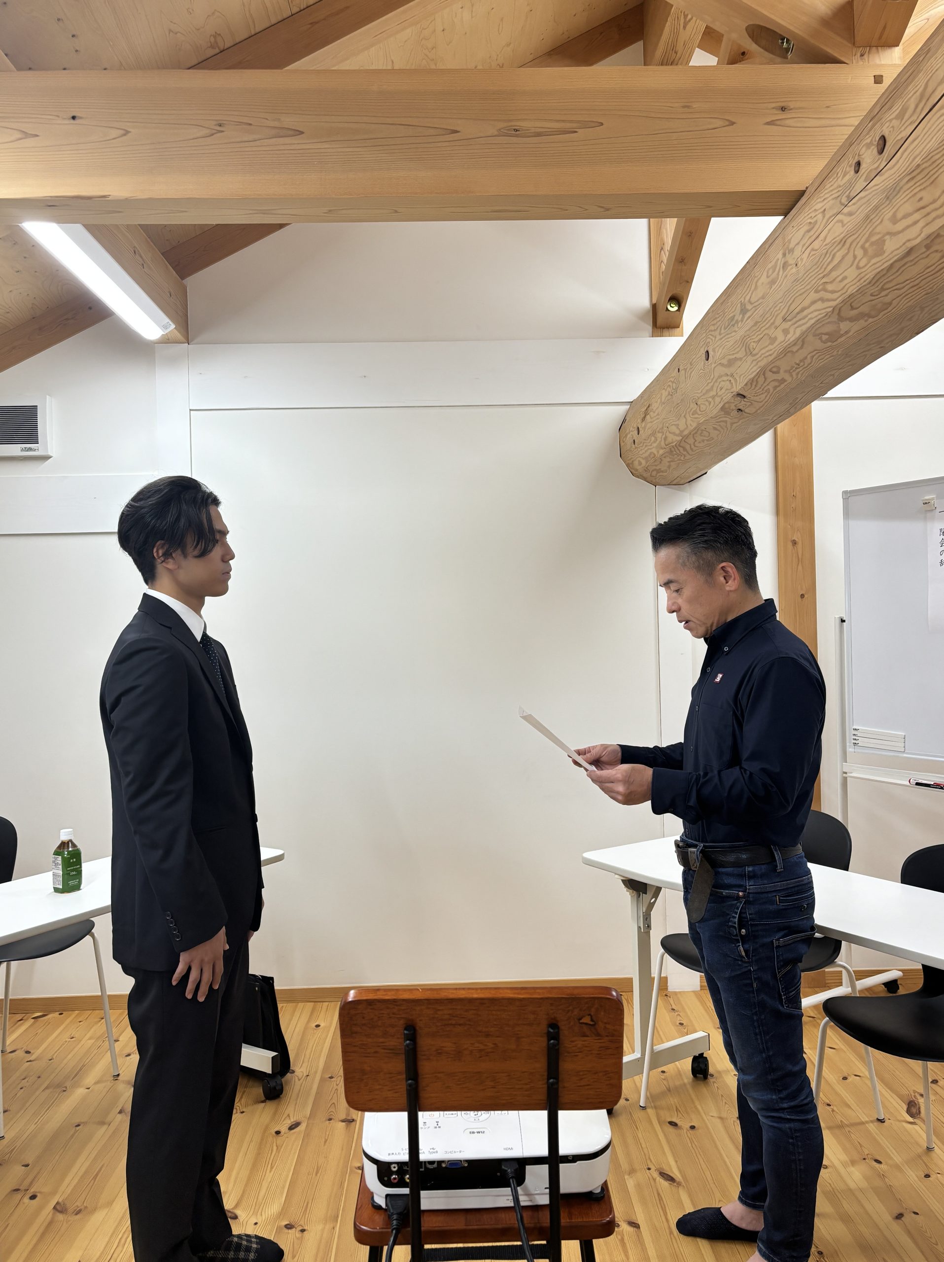 式の中では、社長よりお一人ずつに内定証書の授与を行いました。「来春から新たな仲間として迎えることを心より楽しみにしている」という思いを込めて、お渡ししています✨