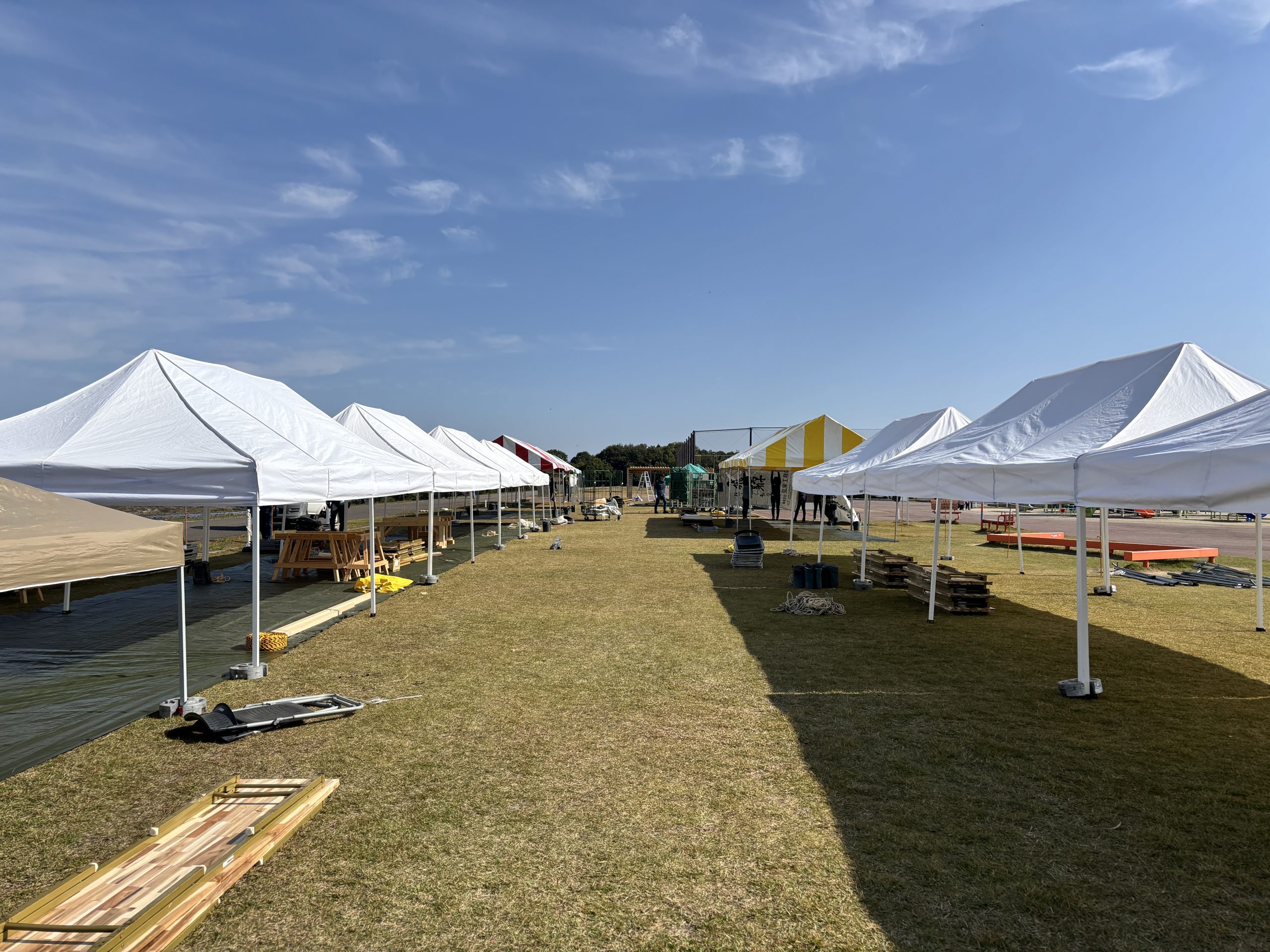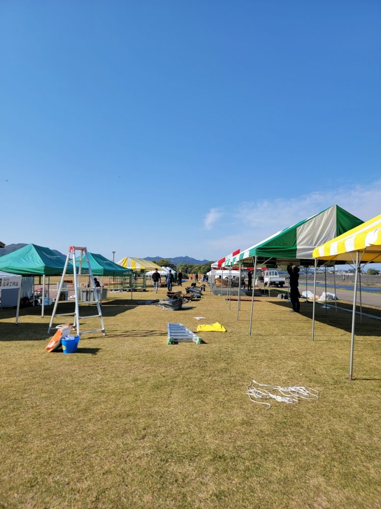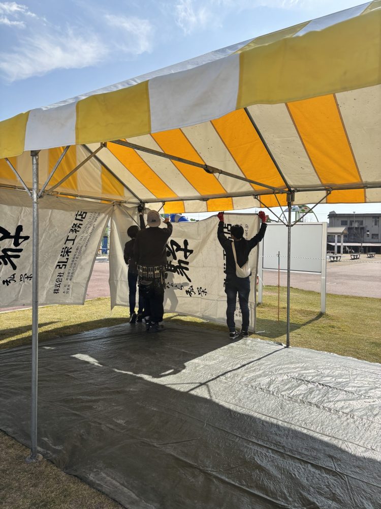 テントを立てたり、看板を設置したり。声を掛け合いながら協力して行いました^^