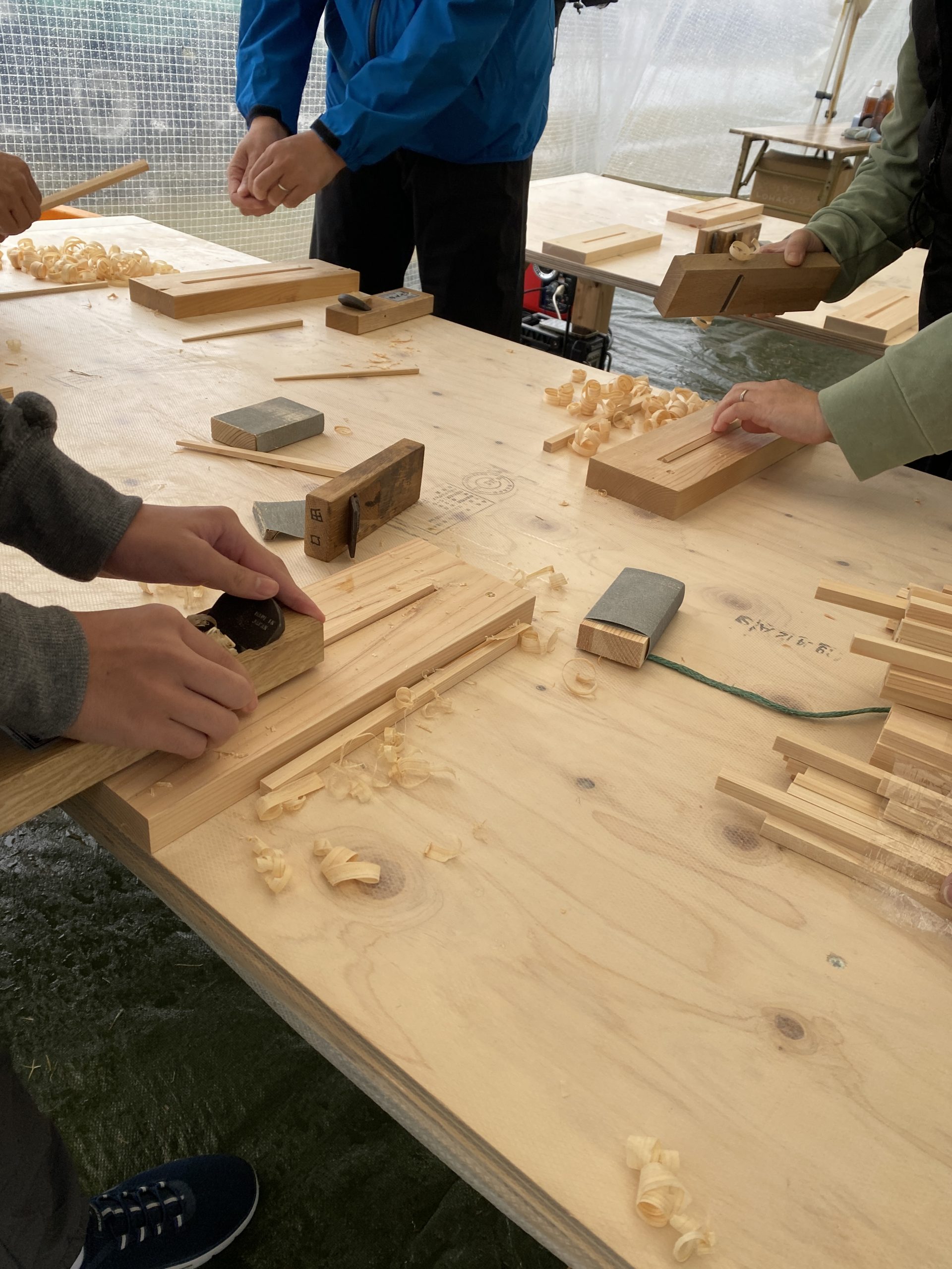 その場で大工さんとかんな削りを体験し、削ったかんな屑を袋に詰めフレグランスアイテムを作ります✨