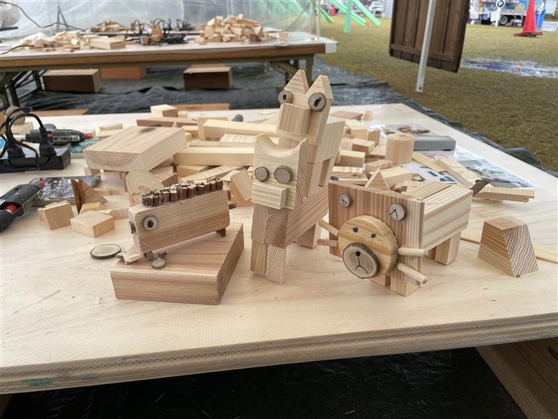 端材を自由に組み合わせて作品を作ります。お子様の自由な発想力でステキな作品が沢山出来上がっていました♪